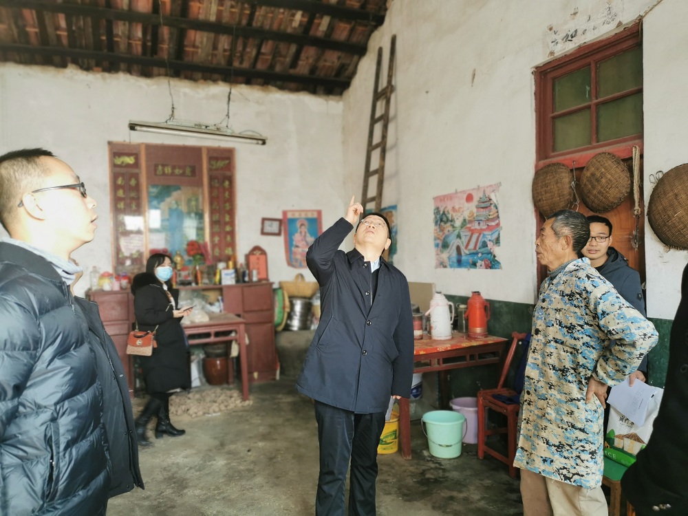 图为姜书记在脱贫户家中询问居住房屋情况