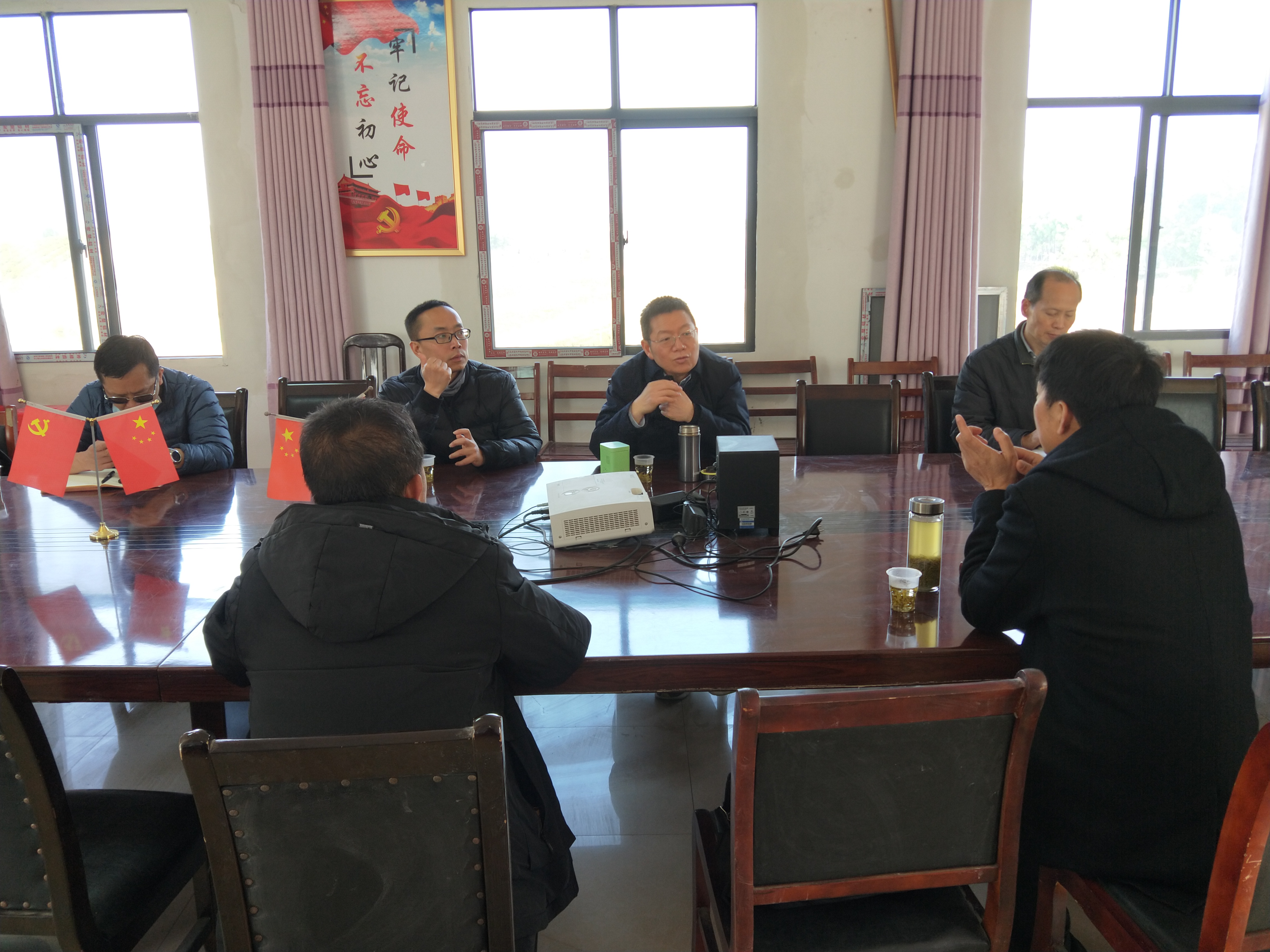 图为姜书记一行同驻村工作队队员、村干部座谈交流