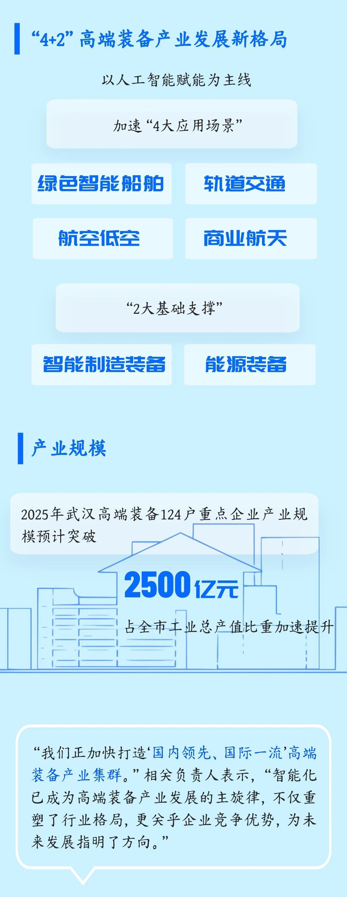 当前,武汉市推动人工智能与高端装备深度融合的产业发展逻辑日益清晰。面向“十五五”,武汉将通过人工智能赋能、场景培育开放和扩大开放合作,打造高端装备“智”造新范式,为全国高端装备产业发展提供“武汉样本”。