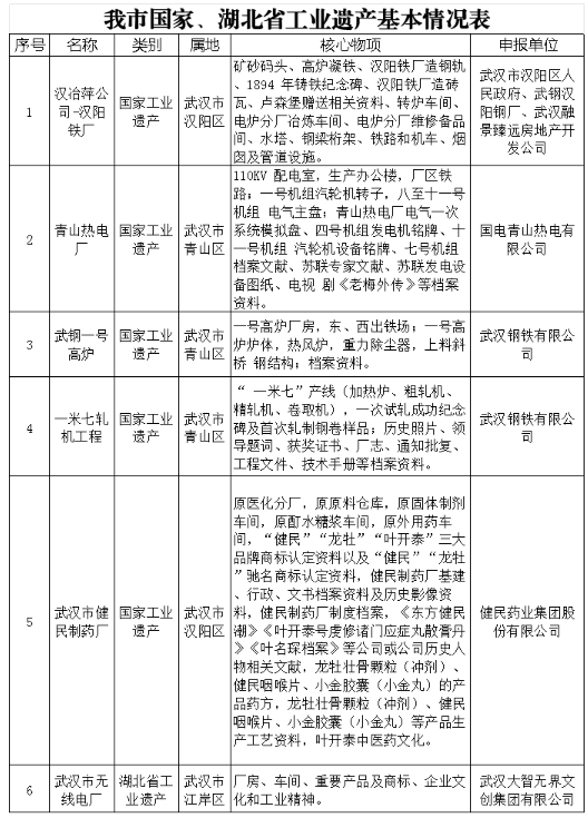 近日,湖北省经信厅发布通知,武汉市无线电厂成功入选第二批湖北省工业遗产名单。目前,我市已有5处国家工业遗产(汉冶萍公司-汉阳铁厂、青山热电厂、武钢一号高炉、一米七轧机工程、武汉市健民制药厂),1处湖北省工业遗产(武汉市无线电厂)。