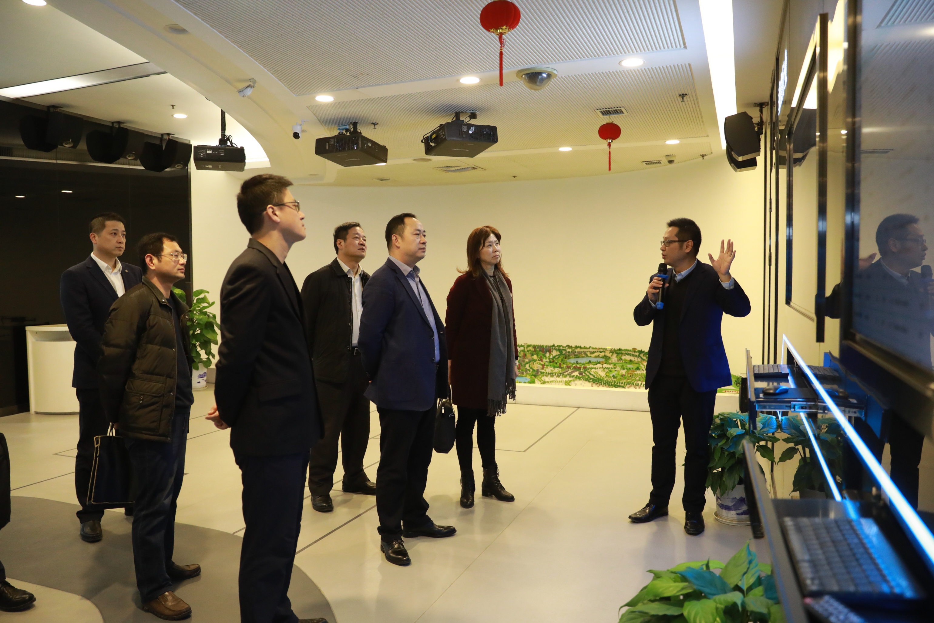 党蓁局长一行首先参观了“天翼领航展厅”,了解武汉电信公司承担的智慧城市项目,使用新视通业务系统与上海连线对话,并饶有兴趣地体验了5G+VR融合应用。党蓁局长指出,武汉电信公司推出的一系列创新业务和应用,聚焦重点行业、瞄准痛点堵点,很有启发意义,下一步要加强技术研发和宣传推广。