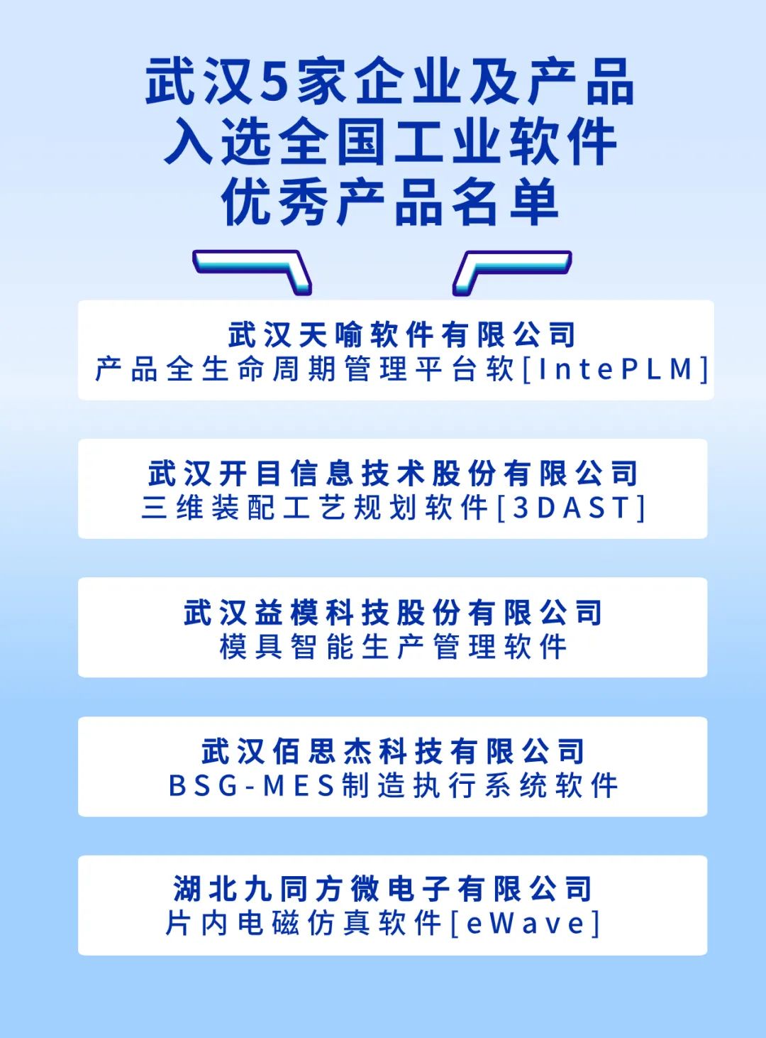 工业和信息化部发布的全国首批工业软件优秀产品名单中,武汉5家企业及产品入选,数量位居副省级城市第一。