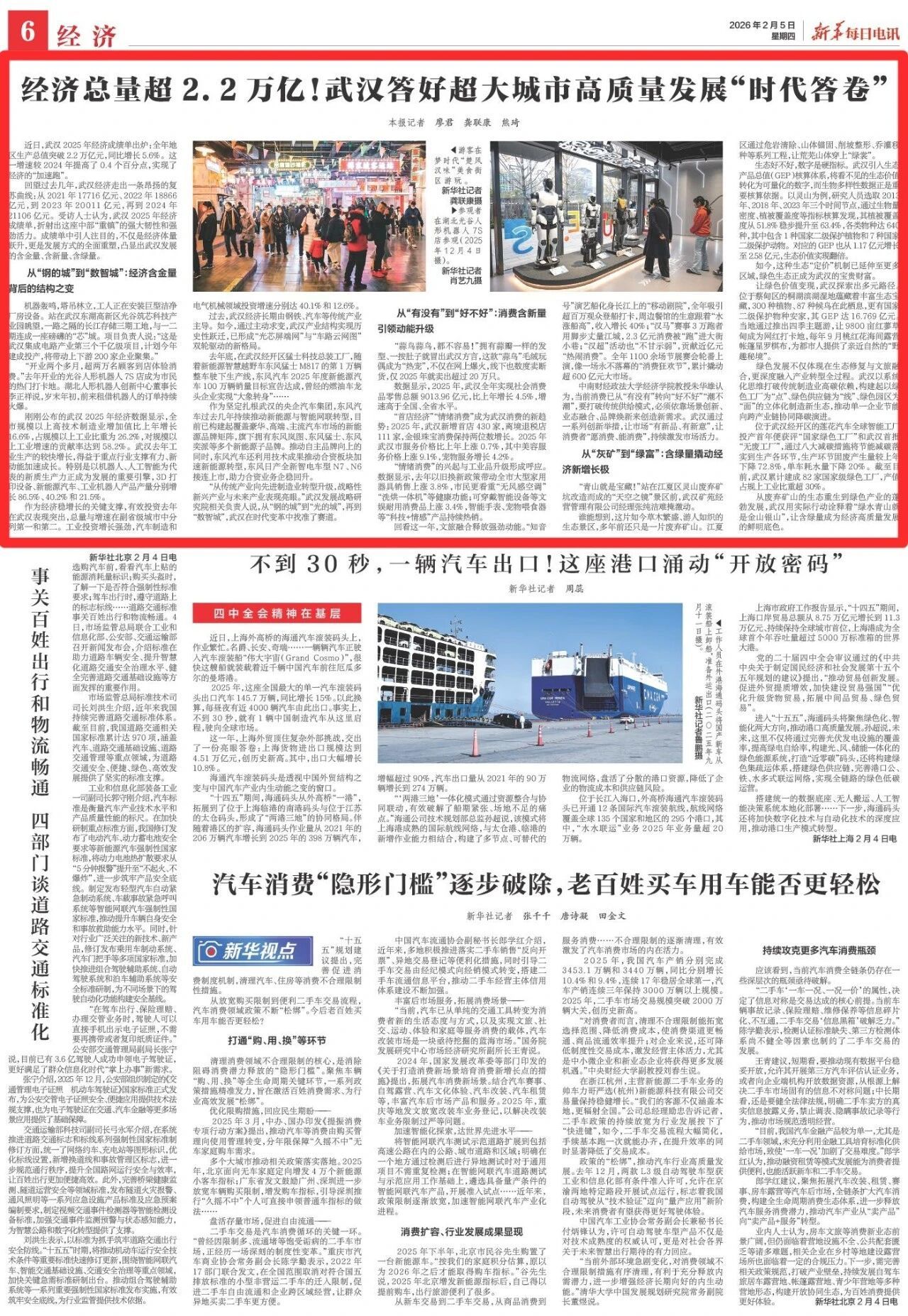 “从传统产业向先进制造业转型升级,战略性新兴产业与未来产业表现亮眼。”武汉发展战略研究院相关负责人说,从“钢的城”到“光的城”,再到“数智城”,武汉在时代变革中找准了赛道。