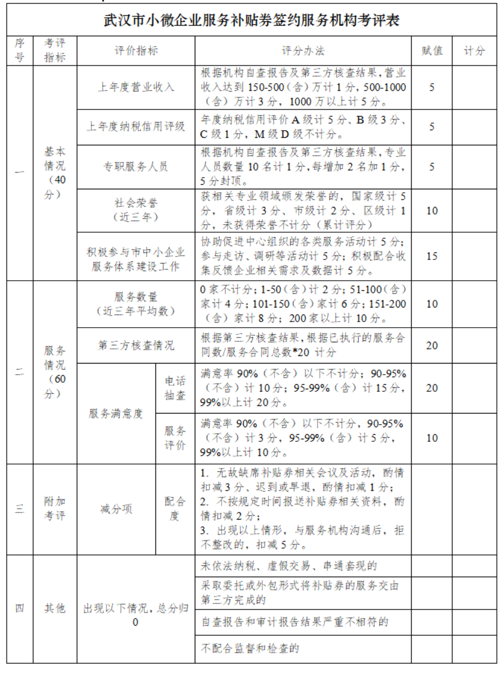 1.《武汉市小微企业服务补贴券签约服务机构考评细则》