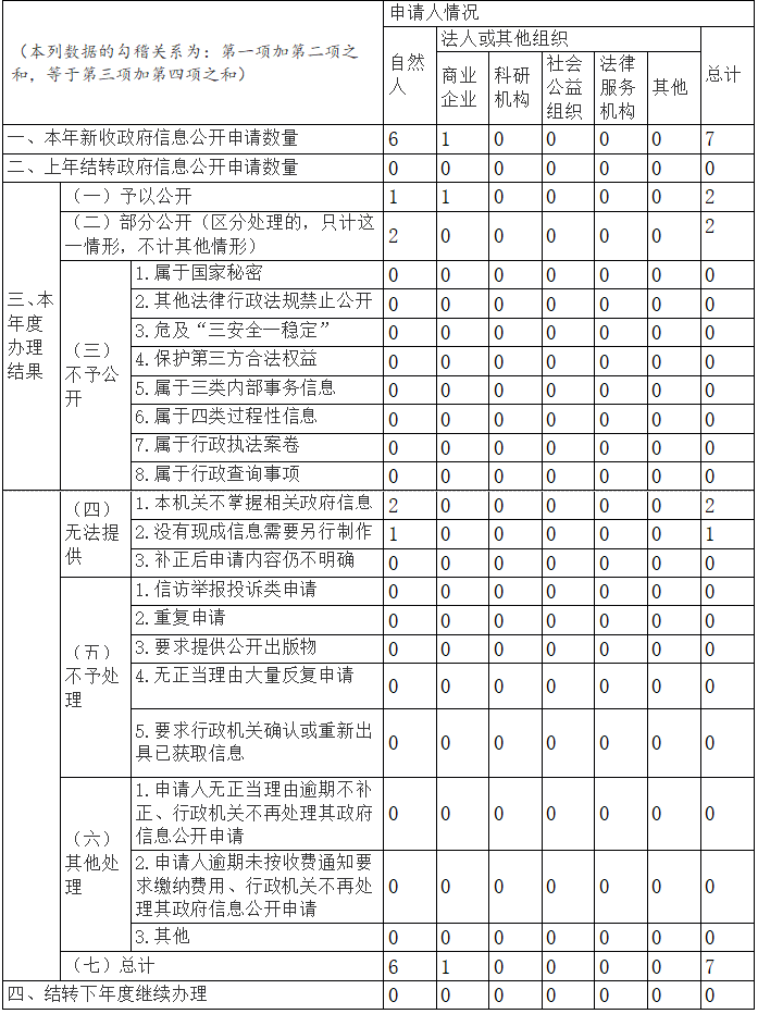 2025年依申请公开7件,其中组织申请1件,个人申请6件;符合公开要求的已按照规定全部公开,不能公开的也及时向申请人说明原因。