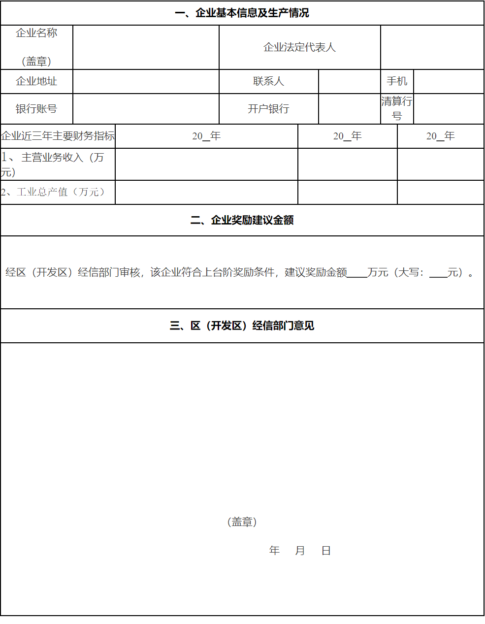2、第二、三部分由区(开发区)经信部门填写;