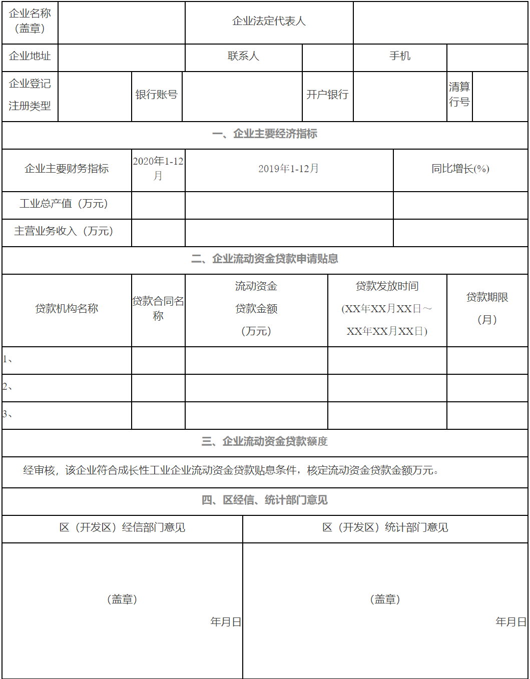武汉市成长性规上工业企业流动资金贷款贴息申报表