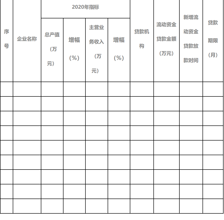备注:1、企业名称填全称,且与统计局户头保持一致;2、企业有多笔贷款的,分项逐笔填写每笔贷款,并汇总;3、贷款放款时间等请按“___日”格式填写